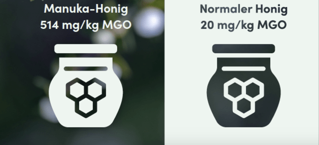 Die MGO Konzentration ist im Vergleich zu herkömmlichen Honigsorten bis zu 100-fach höher. ManukaLind enthält Manuka-Honig mit einem besonders hohen Anteil an Methylglyoxal (MGO 514+).